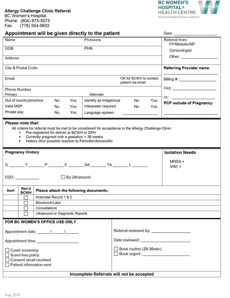 This form must accompany the BCWH BCCH Embryology request form. It outlines the choices/responsibilities of the parent when requesting embryology tests. Created in conjunction with the Embryology request form at the request of Winnifred Angus.