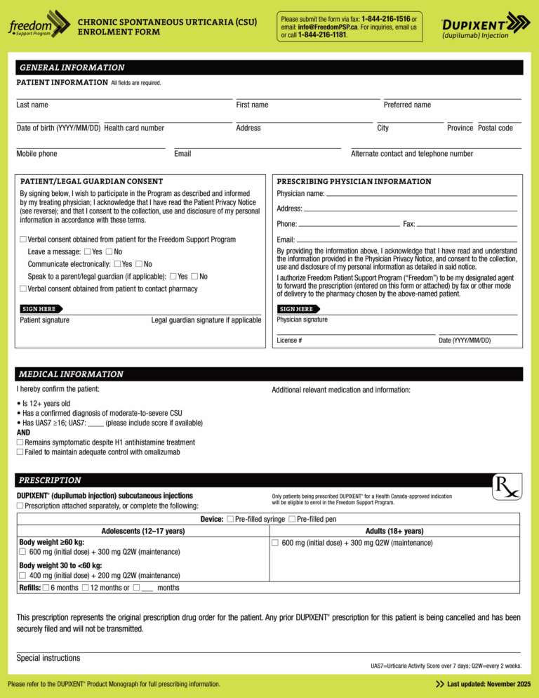 Dupixent (dupilumab) PSP Atopic Derm Enrolment Form (QC) EN 2025