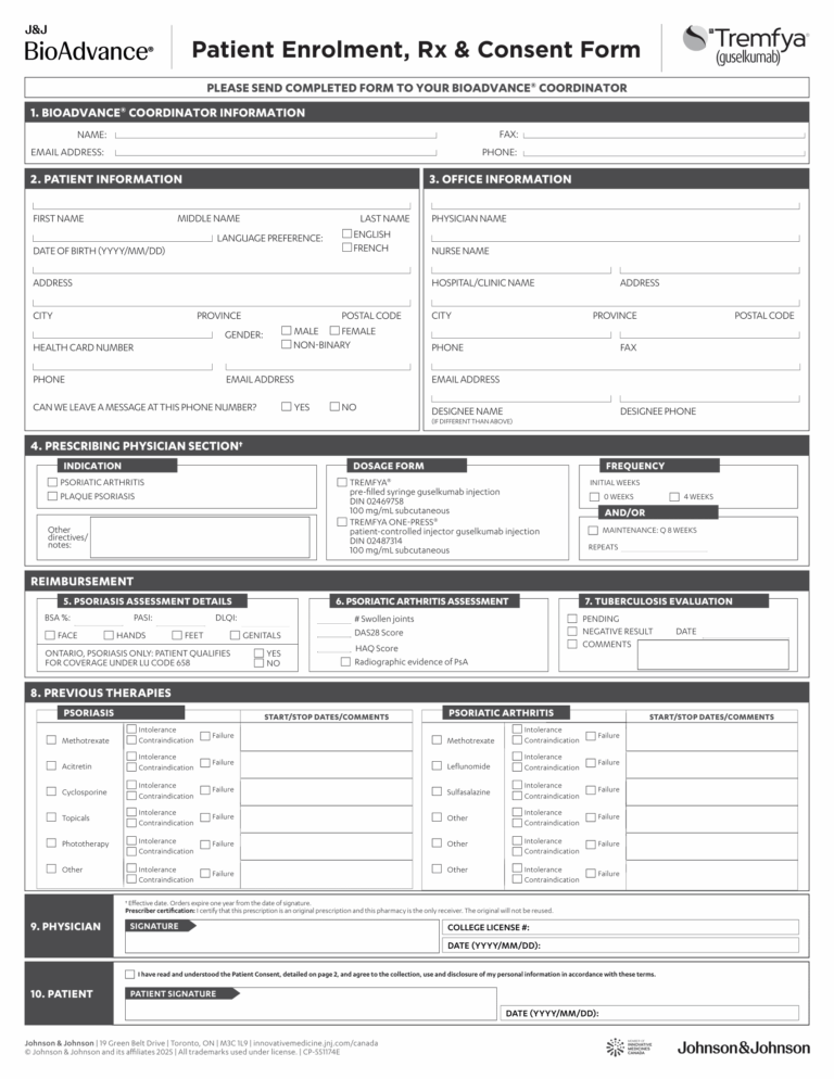 Arthritis, eForms, Medication Coverage, ONTremfya (guselkumab) BioAdvance PSP Form 2025EMReachFebruary 20, 2026