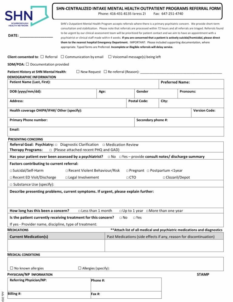 Created by Leo Pavone – Referral form for the Centralized intake for Mental Health Outpatient Programs in the Scarborough Health Network. Updated by Leo Pavone, 2024 background.