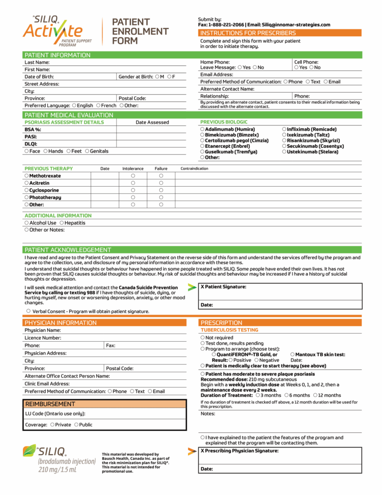Siliq (brodalumab) PSP Enrolment Form 2025