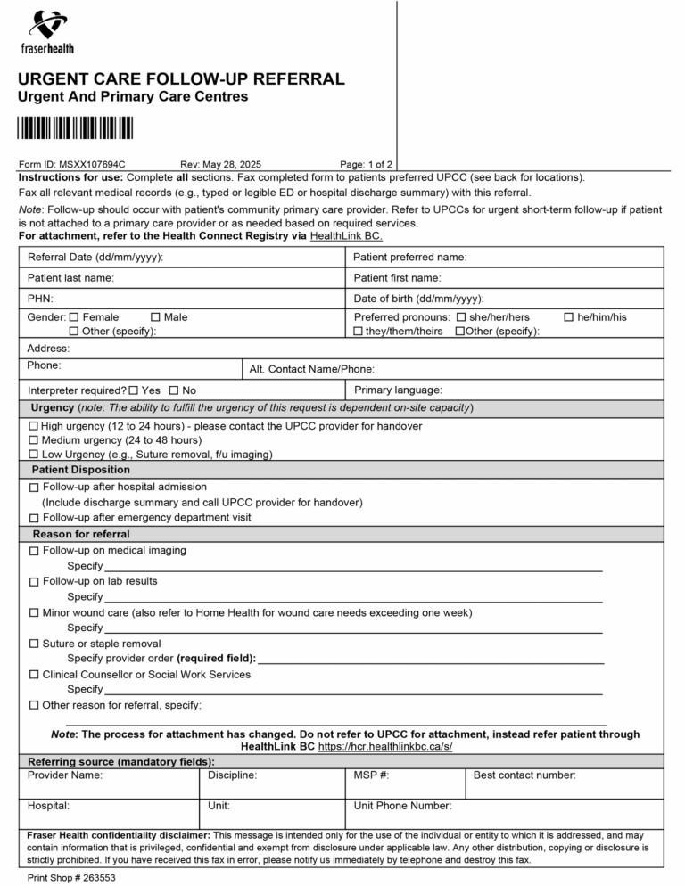 For patients seen in the Emergency Department or Admitted to Hospital. For Urgent follow up in the community.