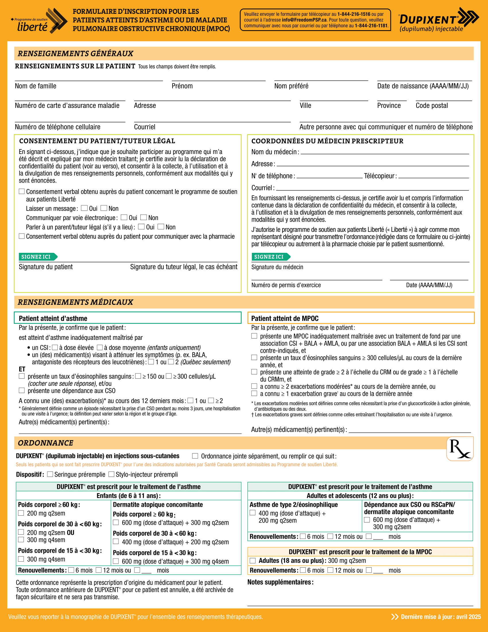 Dupixent (dupilumab) PSP Formulaire d'inscription Asthme MPOC FR 2025
