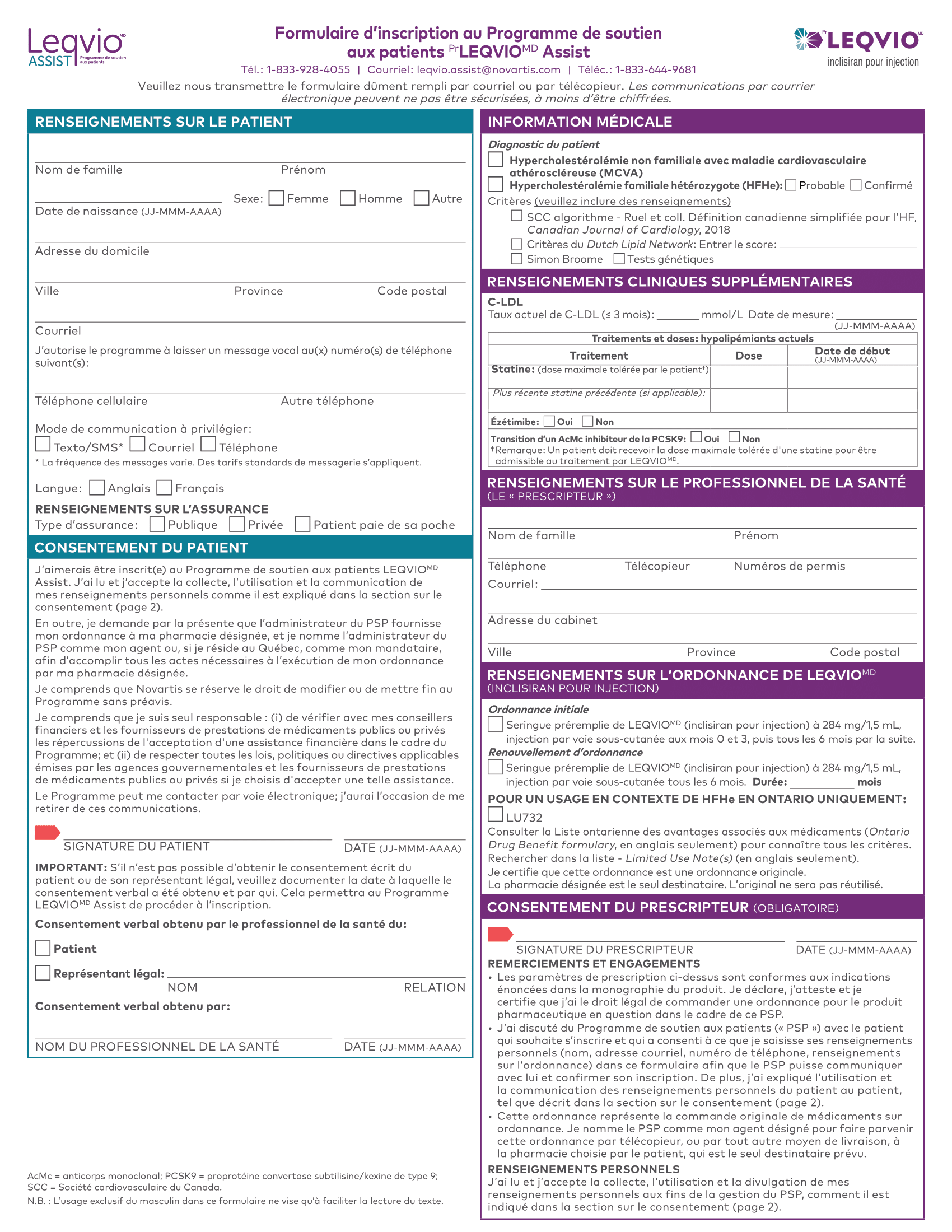 Leqvio (inclisiran) Assist Formulaire d'inscription PSP