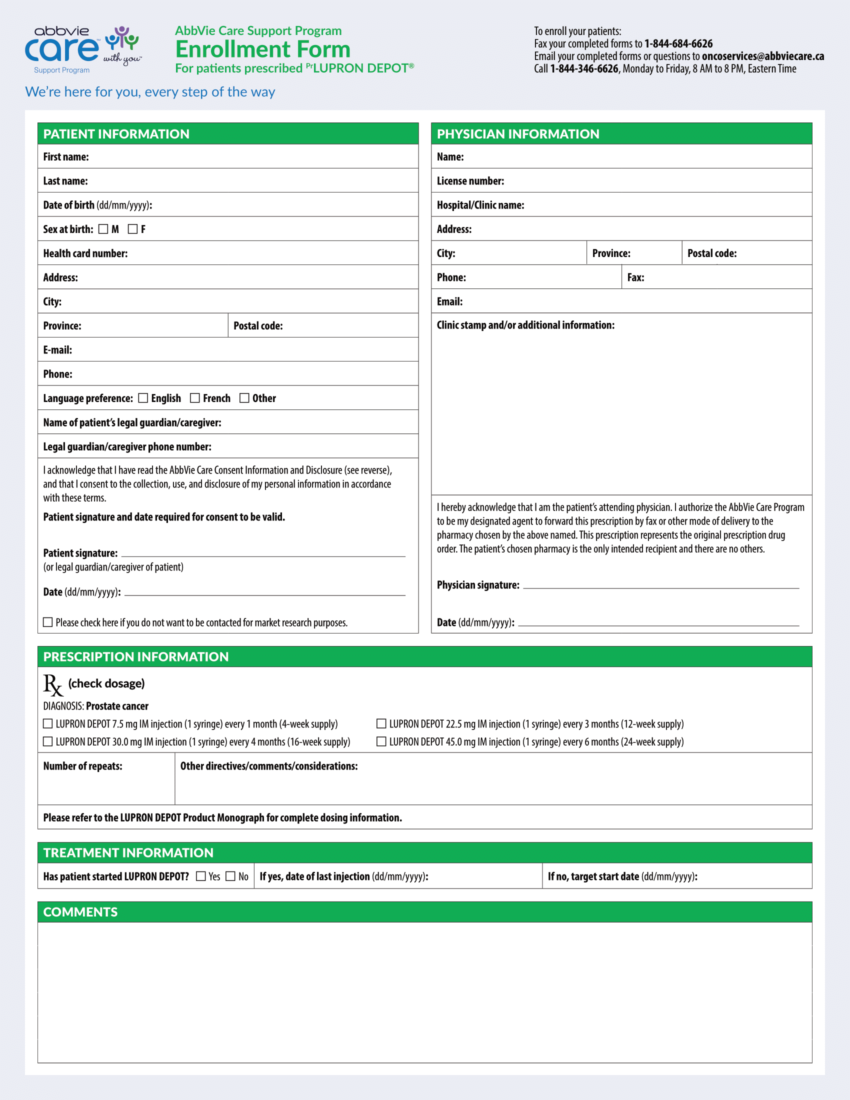 Lupron Depot (leuprolide acetate) PSP Form – 2026EMReachJanuary 30, 2026Cancer, QC Version Download 509 File Size 718.90 KB File Count 1 Create Date January 30, 2026 Last Updated April 6, 2026 Lupron Depot (leuprolide acetate) PSP Form - 2026 Attached Files and Latest Versions 1 file Lupron_Depot_leuprolide_acetate_PSP_Form_2026.zip619.21 KBDownload acetate Depot leuprolide Lupron