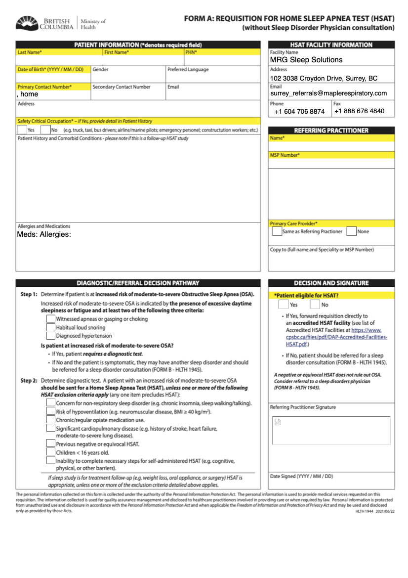 Maple Respiratory Group (MRG) HSAT referral eFORM