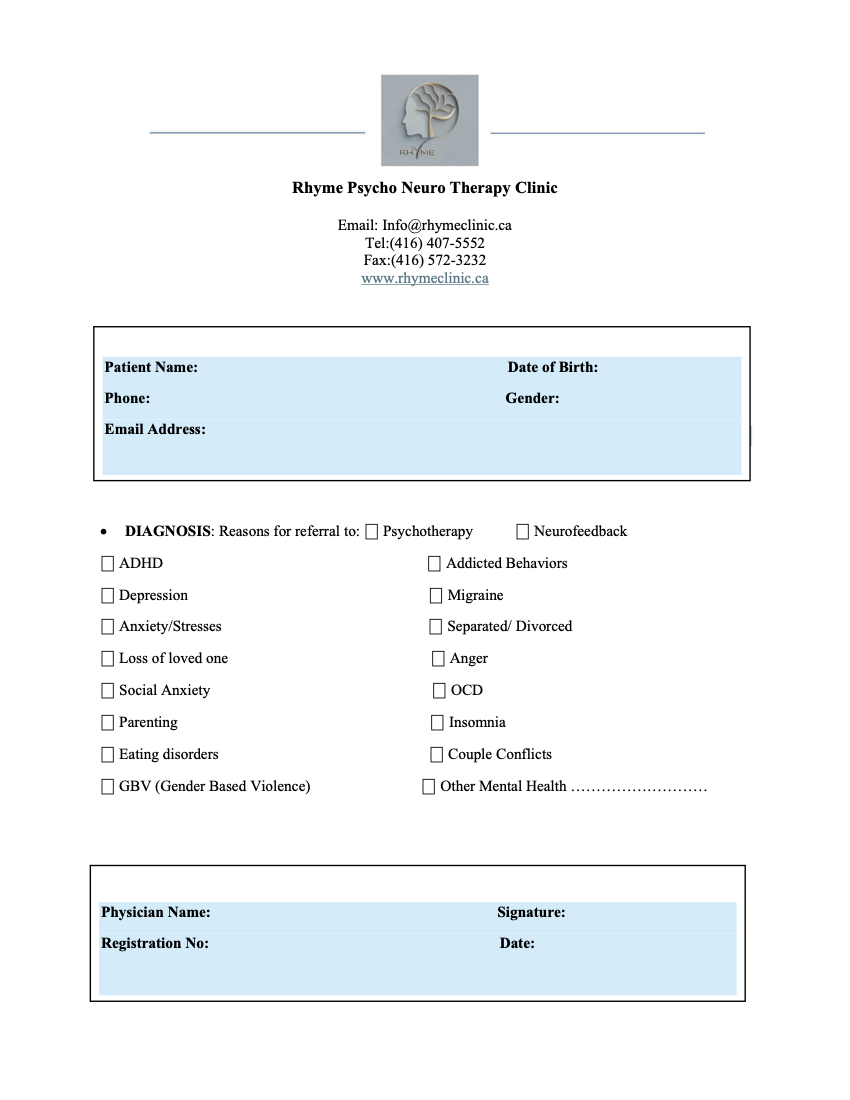 Neurofeedback & Psychotherapy Referral eFORM