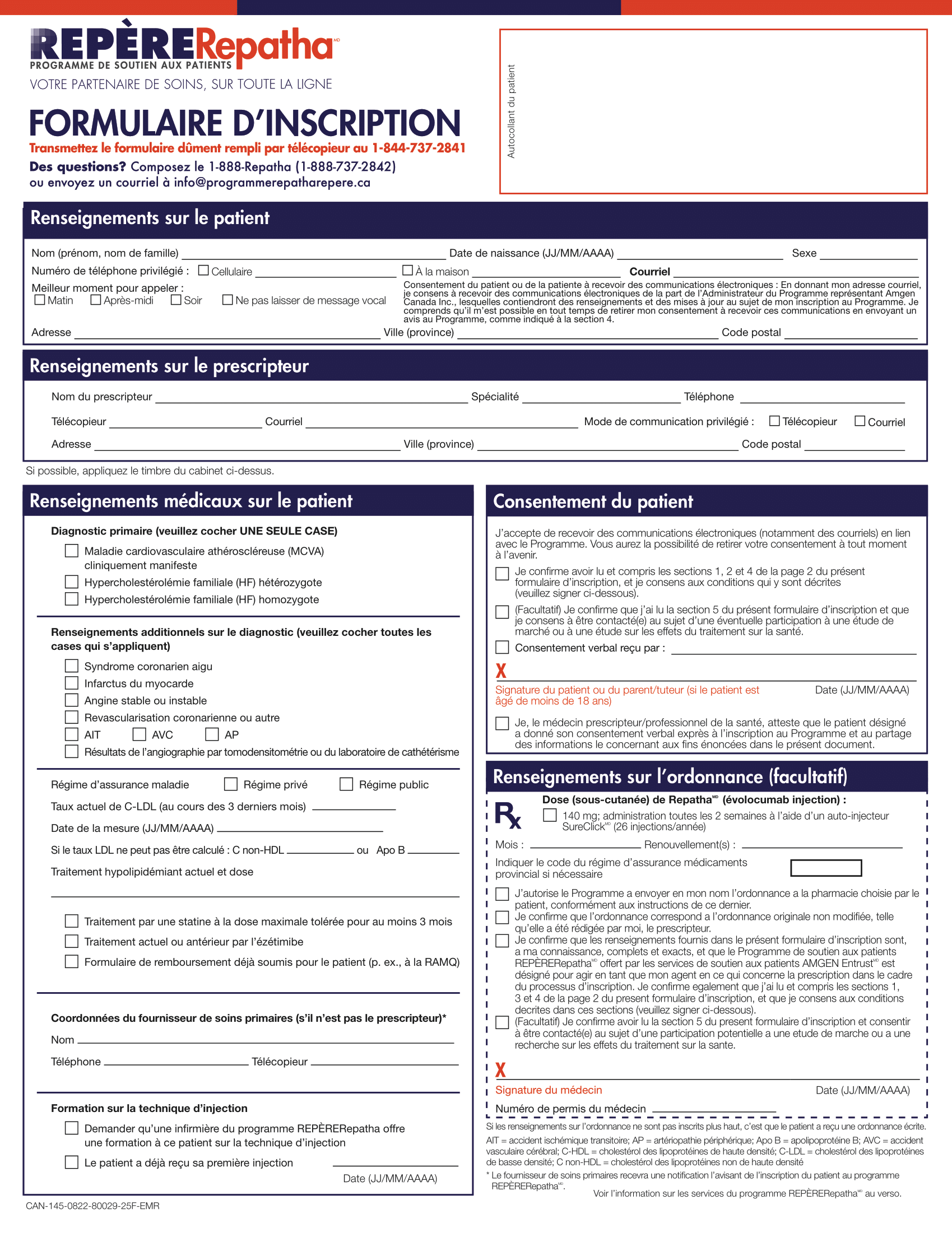 Repatha (evolocumab) PSP Formulaire d’inscription